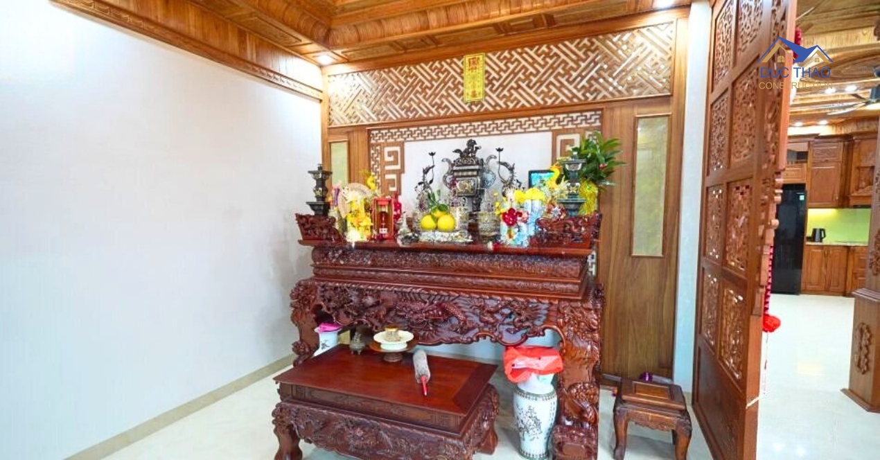 Phòng thờ được bố trí tại vị trí cao và trang trọng nhất của tầng 2, đảm bảo yếu tố phong thủy và sự tôn nghiêm. Ban công rộng phía trước vừa là nơi thư giãn lý tưởng, vừa giúp điều hòa không khí cho toàn bộ tầng trên. Các không gian được kết nối hài hòa thông qua hành lang thoáng, sàn lát gạch chống trượt, tạo sự an toàn cho người già và trẻ nhỏ khi di chuyển.