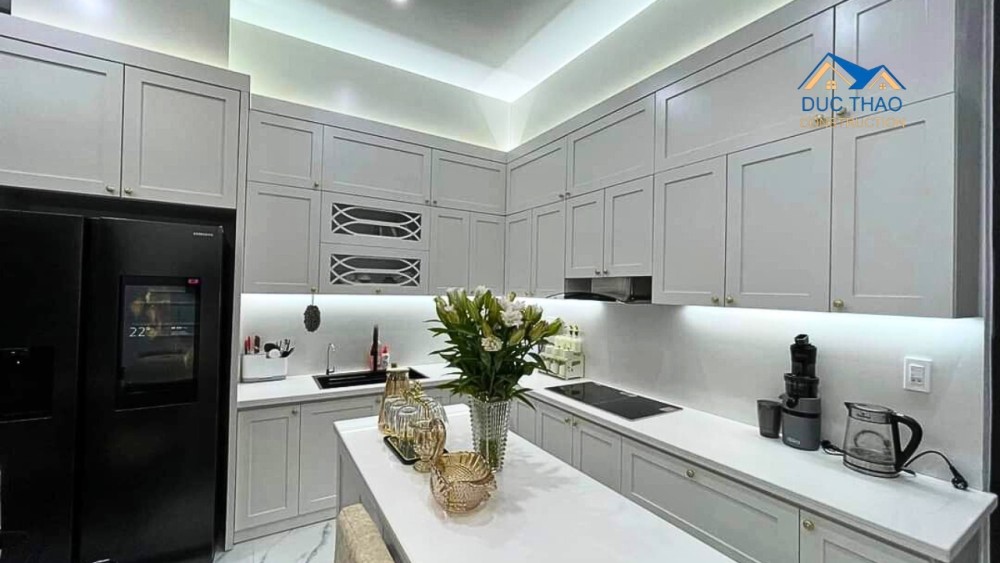 Trong suốt quá trình thi công, Đức Thảo luôn đặt chất lượng và uy tín lên hàng đầu. Vật liệu được lựa chọn kỹ càng, đội ngũ kỹ sư và công nhân lành nghề luôn làm việc với tinh thần trách nhiệm cao. Công trình được bàn giao đúng tiến độ, đảm bảo các tiêu chí về kỹ thuật, thẩm mỹ và sự hài lòng tuyệt đối từ chủ đầu tư. Đức Thảo không chỉ xây dựng một ngôi nhà – mà còn kiến tạo một không gian sống lý tưởng.