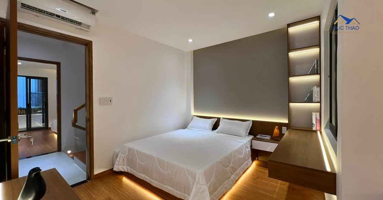 Điểm nhấn của ngôi nhà 5 tầng chính là sự phân chia không gian hợp lý tại các tầng trên. Mỗi tầng 2, 3 và 4 đều được bố trí 3 phòng ngủ riêng biệt, mỗi phòng đều có nhà vệ sinh (WC) khép kín, mang lại sự riêng tư và tiện lợi tối đa cho từng thành viên trong gia đình. Các phòng ngủ đều được thiết kế rộng rãi, thoáng đãng với hệ thống cửa sổ lớn và ban công riêng, giúp đón ánh sáng tự nhiên và gió trời, tạo cảm giác thư thái, dễ chịu. Từ việc lựa chọn màu sắc, vật liệu đến cách bố trí nội thất, mọi chi tiết đều được chăm chút tỉ mỉ, đảm bảo mỗi căn phòng là một không gian nghỉ ngơi lý tưởng, phản ánh cá tính của chủ nhân. Đây thực sự là những không gian an yên, nơi mọi người có thể tìm thấy sự riêng tư và thoải mái sau một ngày dài.