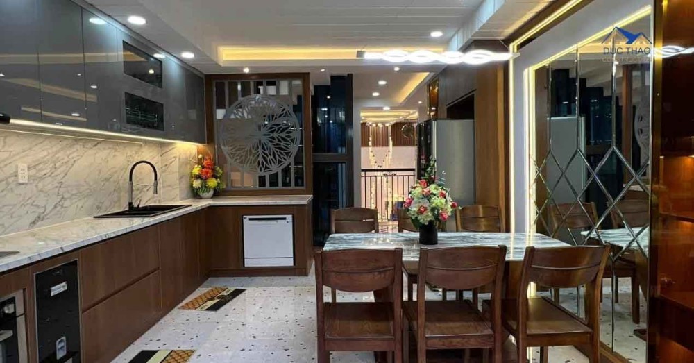 Bước vào ngôi nhà 5 tầng hiện đại của ông Linh, tầng 1 chào đón bạn bằng một không gian mở đầy ấn tượng. Phòng khách rộng rãi, ngập tràn ánh sáng tự nhiên, là nơi lý tưởng để cả gia đình quây quần, trò chuyện và đón tiếp khách quý. Kế đến là khu vực bếp được thiết kế hiện đại, tích hợp đầy đủ tiện nghi, từ hệ thống tủ bếp thông minh đến các thiết bị gia dụng cao cấp, khơi nguồn cảm hứng cho những bữa ăn ấm cúng. Đặc biệt, tầng 1 còn bố trí một phòng ngủ tiện lợi cùng một nhà vệ sinh (WC) chung, rất phù hợp cho người lớn tuổi hoặc làm phòng dành cho khách, đảm bảo sự riêng tư và tiện nghi tối đa. Sự bố trí khoa học, tinh tế tại tầng trệt tạo nên một tổng thể hài hòa, đáp ứng trọn vẹn nhu cầu sinh hoạt của gia đình.