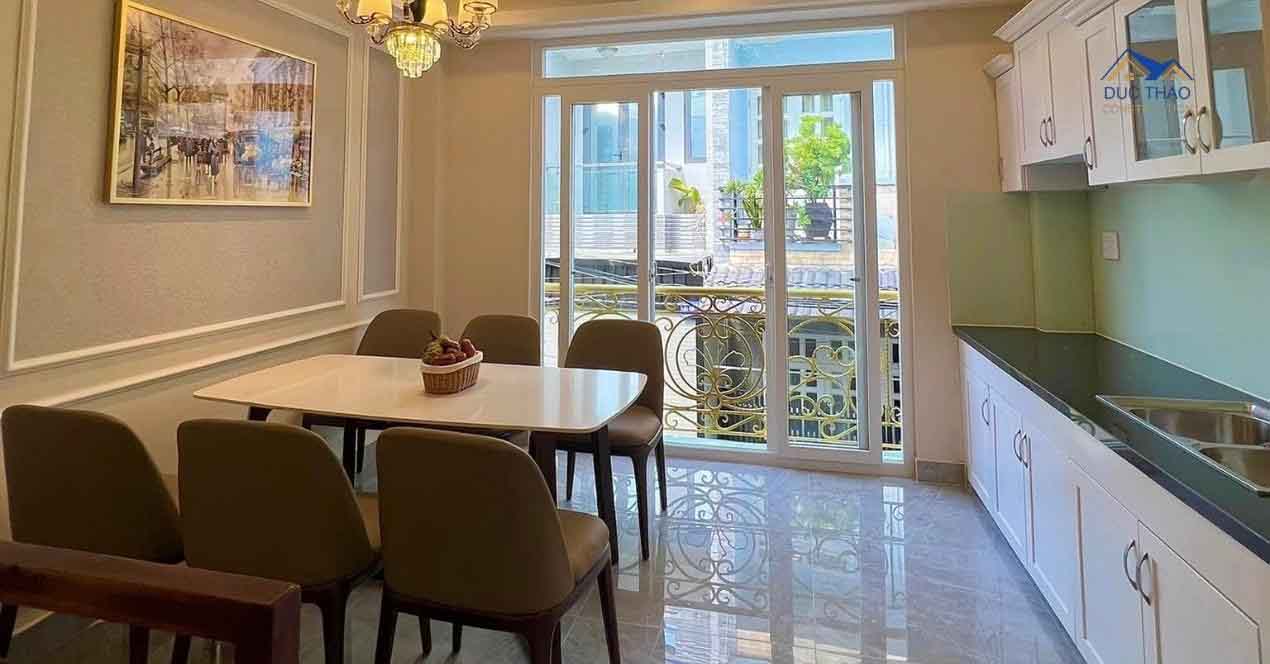 Bước vào ngôi nhà phố 4 tầng trên diện tích 60m² tại Quận Phú Nhuận, bạn sẽ cảm nhận ngay sự tối ưu trong từng không gian, được bố trí một cách khoa học và đầy tính tiện nghi. Tầng 1 mở ra một không gian sinh hoạt chung rộng lớn, nơi mà phòng khách trở thành trung tâm gắn kết của gia đình. Với thiết kế mở, thoáng đãng, đây là nơi lý tưởng để đón tiếp bạn bè, sum họp sau một ngày dài, hoặc đơn giản là cùng nhau thưởng thức những bộ phim yêu thích. Liền kề với phòng khách là khu vực bếp ấm cúng và hiện đại, được trang bị đầy đủ tiện nghi, khơi gợi cảm hứng nấu nướng và tạo nên những bữa ăn ngon miệng. Sự kết nối linh hoạt giữa phòng khách và bếp giúp các thành viên dễ dàng giao lưu, trò chuyện trong khi chuẩn bị bữa ăn. Để đảm bảo sự thuận tiện tối đa, một nhà vệ sinh (WC) được bố trí ngay tại tầng trệt, phục vụ nhu cầu sinh hoạt chung của cả gia đình và khách đến chơi.