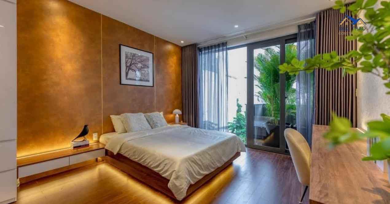 Kiến trúc ngôi nhà phố 4 tầng tại Quận Phú Nhuận được định hình theo phong cách hiện đại, ưu tiên sự đơn giản, tinh tế và tối ưu hóa không gian. Mặt tiền 4m được thiết kế với các đường nét mạnh mẽ, vật liệu hiện đại như kính cường lực, lam gỗ và gạch ốp, tạo nên vẻ ngoài sang trọng và thu hút. Ánh sáng tự nhiên và thông gió được chú trọng thông qua việc bố trí cửa sổ lớn, giếng trời và ban công ở các tầng. Về nội thất, từng không gian đều được chăm chút tỉ mỉ với các gam màu trung tính kết hợp điểm nhấn, tạo cảm giác rộng rãi và ấm cúng. Đồ nội thất được lựa chọn kỹ lưỡng, không chỉ đẹp mắt mà còn tích hợp nhiều tính năng thông minh, giúp tối đa hóa diện tích sử dụng. Sự đồng bộ trong thiết kế từ kiến trúc đến nội thất đã tạo nên một tổng thể hài hòa và đẳng cấp.