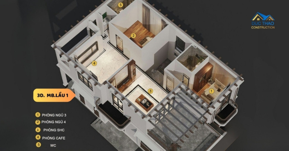 Khi bước vào lầu 1 của biệt thự 2 tầng mái Nhật Tân cổ điển, khách được đón nhận bởi không gian ấm cúng và sang trọng của thiết kế nội thất 3D. Cấu trúc không gian lầu 1 đã được tối ưu hóa để mang lại sự thoải mái và tiện nghi đối với cả gia đình. Với việc có 3 phòng ngủ, không gian này được thiết kế để tạo ra sự riêng tư và sự thoải mái cho cả nhà. Mỗi phòng ngủ được bố trí và thiết kế sao cho tối ưu hóa không gian và ánh sáng tự nhiên, tạo ra môi trường ấm áp để nghỉ ngơi sau một ngày dài. Ngoài ra, không gian lầu 1 còn bao gồm một phòng thờ, nơi gia đình có thể thực hành tín ngưỡng và tập trung vào lễ nghi thoải mái. Phòng karaoke được bố trí tạo điều kiện cho việc giải trí và thư giãn, mang lại không gian vui vẻ và thú vị cho cả gia đình và bạn bè. Một phòng vệ sinh tiện nghi cũng được bố trí thuận tiện để phục vụ cho các nhu cầu sử dụng hàng ngày. Đội ngũ thiết kế của cty đức thảo đã lên phương án thiết kế 3D nội thất đã giúp tạo ra bản vẽ chân thực nhất về cách bố trí và sắp xếp nội thất cho toàn bộ ngôi nhà , từ đồ nội thất cho đến vị trí cụ thể của từng vật dụng , giúp người xem cũng dễ dàng hình dung và hiểu rõ hơn về không gian sống sang trọng tinh tế hơn .
