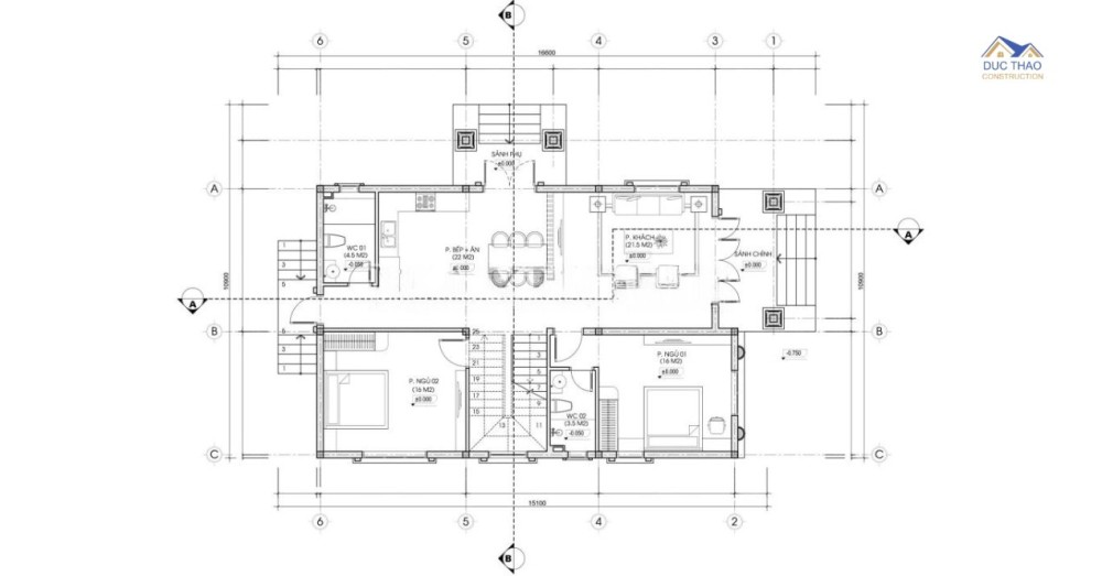 Tiến lên tầng 2, không gian đầu tiên mà chúng tôi muốn chia sẻ là khu vực phòng thờ, có diện tích 18m2. Di chuyển vào trong là phòng sinh hoạt chung, căn phòng này có diện tích 24m2. Tầng này có 3 phòng ngủ. Phòng ngủ số 3 có diện tích khoảng 18m2. Phòng ngủ số 4 có diện tích 18,3m2. Riêng phòng ngủ số 5 có diện tích 24m2, bên trong phòng ngủ có 1 nhà vệ sinh khép kín.Mặt bằng bố trí công năng tầng 2