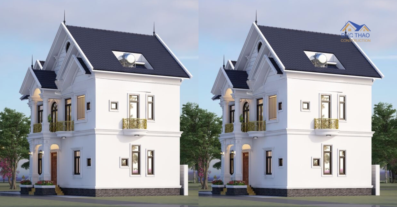 Mẫu biệt thự nhẹ nhàng từ cách kết hợp các chi tiết với nhau. Sự sang trọng, tinh tế của kiến trúc tân cổ được thể qua từng đường nét và hình khối vững chắc. Thước cột, gờ tường được bố trí cân đối để tạo nên sự thống nhất cho căn biệt thự 2 tầng mái thái đầy lịch lãm này .