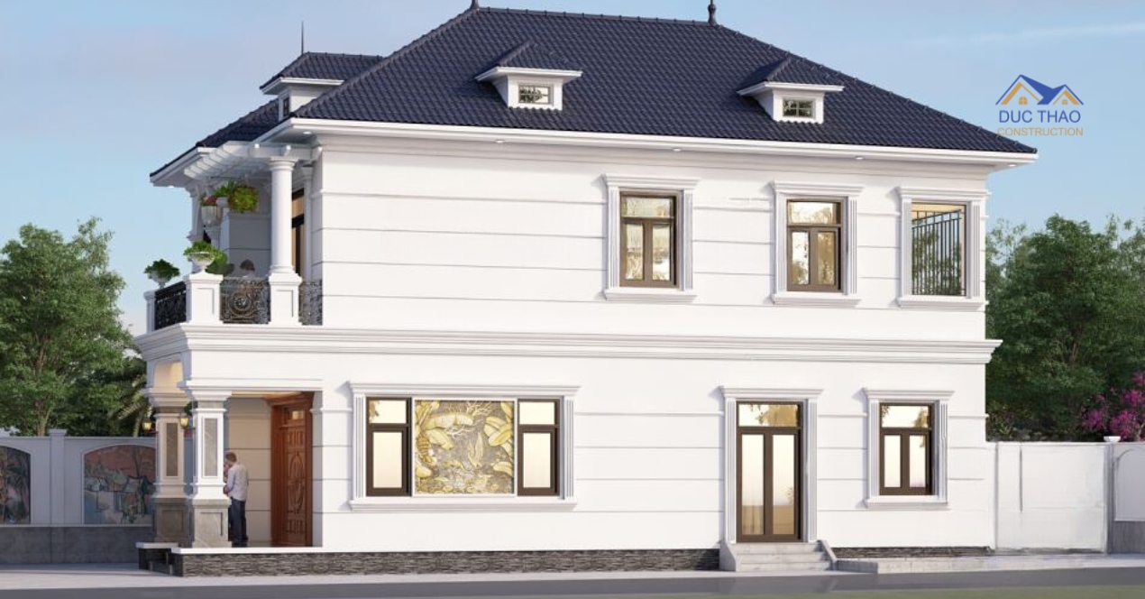 Mẫu biệt thự nhẹ nhàng từ cách kết hợp các chi tiết với nhau. Sự sang trọng, tinh tế của kiến trúc tân cổ được thể qua từng đường nét và hình khối vững chắc. Thước cột, gờ tường được bố trí cân đối để tạo nên sự thống nhất cho căn biệt thự 2 tầng mái nhật đầy lịch lãm này .