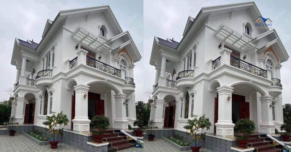 Mẫu biệt thự tân cổ điển 2 tầng mái Thái được thiết kế và thực hiện thi công bởi Cty Xây dựng Đức Thảo, nổi bật với hệ mái Thái dốc đặc trưng, không chỉ giúp thoát nước tốt, chống nóng hiệu quả mà còn tôn lên vẻ cao ráo, thanh thoát cho toàn bộ ngôi nhà. Các chi tiết phào chỉ, cột trụ trang trí và lan can sắt nghệ thuật được bố trí khéo léo, tạo nên một tổng thể hài hòa giữa cổ điển và hiện đại.