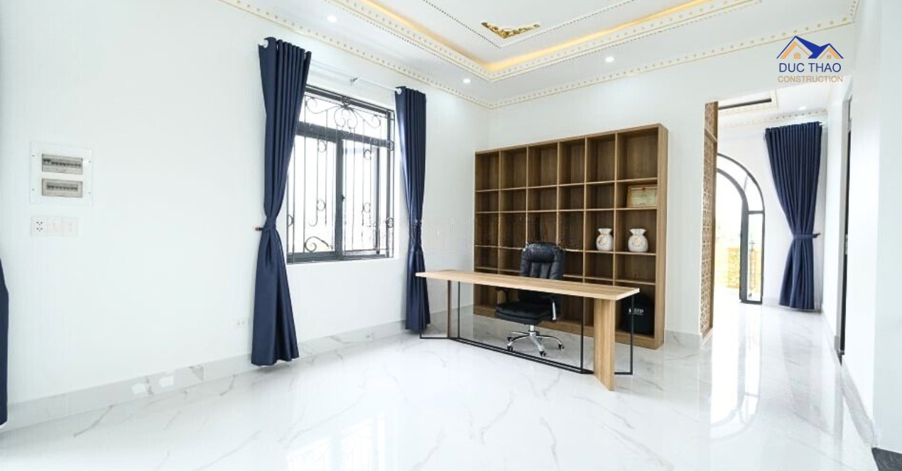 Từ khâu thiết kế, lựa chọn vật liệu đến thi công và hoàn thiện, đội ngũ Xây Dựng Đức Thảo luôn đặt yếu tố chất lượng lên hàng đầu. Từng chi tiết trong căn biệt thự của chị Lý đều được chăm chút kỹ lưỡng – từ hệ thống đèn chiếu sáng, trần thạch cao, sàn gỗ đến hệ thống cửa nhôm kính cao cấp, đảm bảo vừa bền vững vừa thẩm mỹ cao.