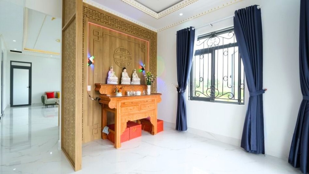 Phòng thờ được bố trí ở vị trí trang trọng, yên tĩnh, thể hiện sự tôn kính với tổ tiên.