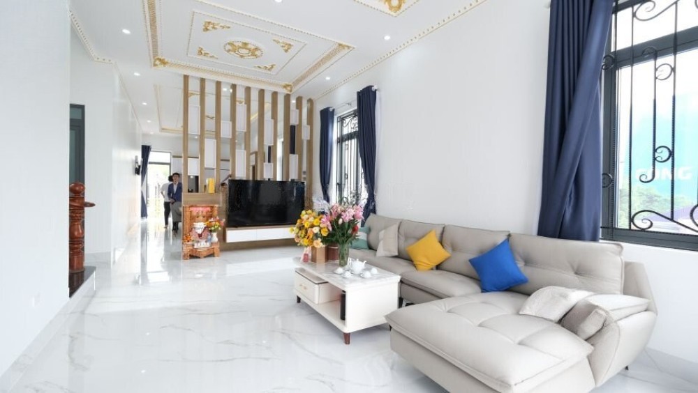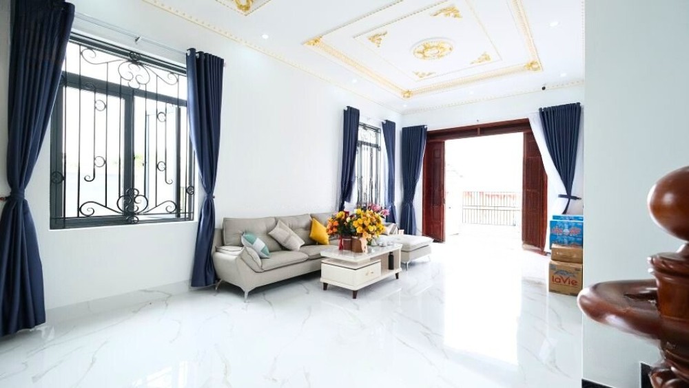 Phòng khách nằm ngay sau cửa chính, rộng rãi, thoáng mát, là nơi đón tiếp khách và sinh hoạt chung của cả gia đình.