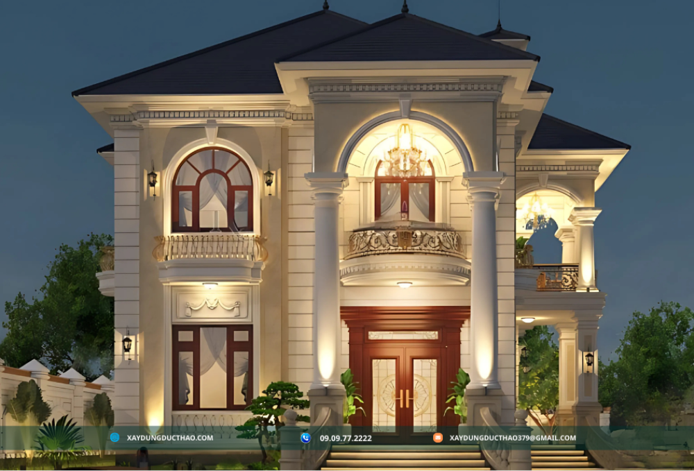 Thiết kế biệt thự tân cổ điển mang đến sự kết hợp tinh tế giữa phong cách cổ điển sang trọng và hiện đại tiện nghi. Từ mặt tiền đối xứng, mái nhà cong vút đến các chi tiết trang trí như cột trụ, cửa sổ lớn, Thiết kế biệt thự tân cổ điển mang đến sự kết hợp tinh tế giữa phong cách cổ điển sang trọng và hiện đại tiện nghi. Từ mặt tiền đối xứng, mái nhà cong vút đến các chi tiết trang trí như cột trụ, cửa sổ lớn, tất cả đều thể hiện sự tinh tế và đẳng cấp của kiến trúc tân cổ điển. Bên trong, không gian nội thất được thiết kế với các món đồ cổ điển như bộ sofa da, đèn chùm pha lê, tạo nên sự sang trọng và ấm cúng. Kết hợp với các tiện ích hiện đại như hồ bơi, phòng gym, spa và không gian xanh mát, biệt thự tân cổ điển trở thành một tổng thể hoàn hảo, đáp ứng mọi nhu cầu của chủ nhân. Với vẻ đẹp tinh tế và đẳng cấp, với tác phẩm của công ty xây dựng đức thảo là một mẫu biệt thự tân cổ điển là lựa chọn hoàn hảo cho
