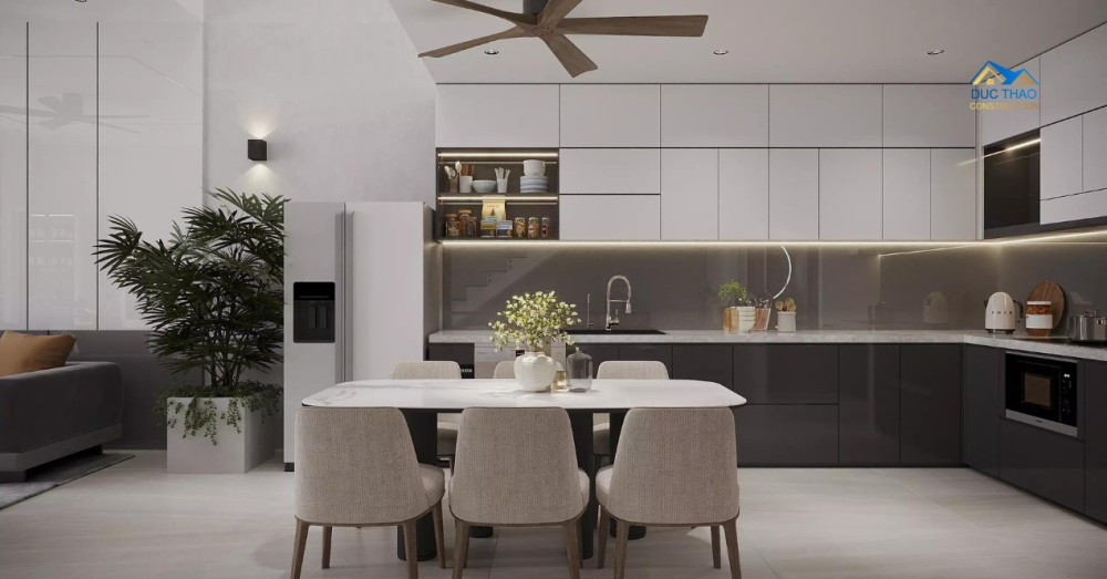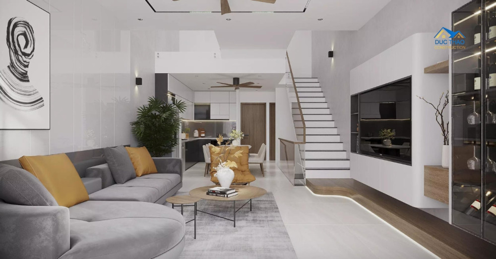 Để tạo nên một không gian sống đẳng cấp, Đức Thảo đã tỉ mỉ lựa chọn các vật liệu xây dựng và nội thất cao cấp. Từ sàn gỗ ấm cúng mang lại cảm giác dễ chịu khi bước chân, đến gạch ốp lát sang trọng và bền bỉ, từ hệ thống chiếu sáng thông minh tạo hiệu ứng ánh sáng đa dạng, đến các thiết bị vệ sinh hiện đại và tiện nghi, mỗi chi tiết đều được cân nhắc kỹ lưỡng để đảm bảo tính thẩm mỹ, độ bền và sự tiện nghi tối đa. Nội thất được thiết kế theo phong cách hiện đại, tối giản nhưng vẫn toát lên vẻ tinh tế, sang trọng. Sự kết hợp hài hòa giữa màu sắc, ánh sáng và vật liệu tạo nên một không gian sống ấm cúng, tiện nghi và đầy cảm hứng. Mỗi không gian đều mang dấu ấn của người ở – giản dị, sâu sắc và không chạy theo xu hướng. Đó cũng chính là tinh thần mà Đức Thảo luôn theo đuổi trong các dự án: Thiết kế để chạm đến lối sống và cá tính của từng gia chủ.