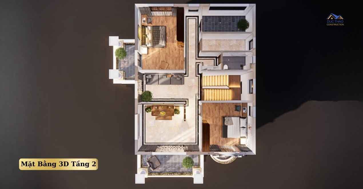 3D mặt bằng nội thất trệt và lầu 1