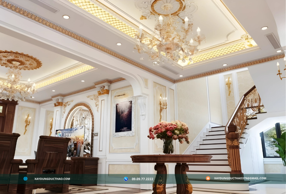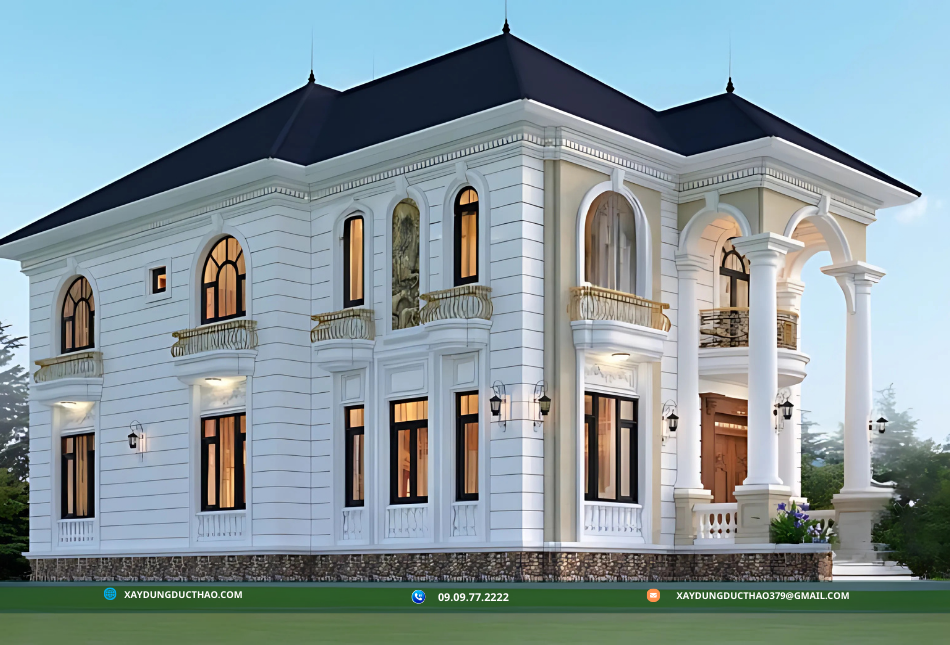 Biệt thự tân cổ điển mái Nhật của công ty xây dựng đức thảo là sự kết hợp hoàn hảo giữa tinh hoa của kiến trúc cổ điển và những đường nét hiện đại, mang đến một không gian sống đầy sang trọng và tiện nghi. Loại hình kiến trúc này thừa hưởng vẻ đẹp quý phái và thanh lịch từ phong cách cổ điển, đồng thời tích hợp các yếu tố chức năng và tối ưu hóa không gian theo xu hướng hiện đại. Thiết kế mái Nhật đặc trưng với độ dốc nhẹ, giúp tận dụng tối đa ánh sáng tự nhiên và khả năng thoát nước tốt, rất phù hợp với điều kiện khí hậu ở Việt Nam. Ngoài ra, biệt thự tân cổ điển mái Nhật còn tôn vinh vẻ đẹp bền vững qua thời gian, giúp nâng tầm đẳng cấp và gu thẩm mỹ của chủ nhân, trở thành lựa chọn lý tưởng cho những ai tìm kiếm sự hoàn mỹ trong cả thiết kế và công năng sử dụng.