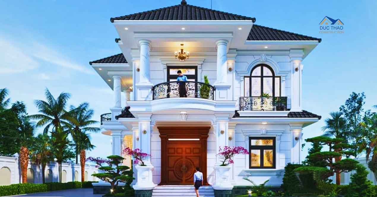 Các biệt thự tân cổ điển thường có các chi tiết độc đáo như cửa sổ hình học, cánh cửa hoành tráng, và các chi tiết kiến trúc phức tạp. Vật liệu sử dụng thường là các loại đá, gỗ, và kim loại, tạo nên vẻ đẹp và độ bền cho kiến trúc.Ngoài ra, biệt thự tân cổ điển còn thường có không gian xanh bao quanh, với sân vườn rộng và các yếu tố trang trí như đài phun nước hay hồ bơi, tạo nên không gian ngoại thất đẹp mắt và tinh tế. Với biệt thự tân cổ điển 2 tầng, thiết kế và kiến trúc tạo nên một không gian sống sang trọng và ấm cúng, kết hợp giữa sự cổ điển và hiện đại. Đây là một ngôi nhà lý tưởng cho những người yêu thích vẻ đẹp cổ điển mà không muốn từ bỏ tiện nghi và sự thoải mái của đời sống hiện đại.