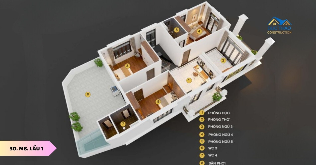 Tích hợp công nghệ 3D, bạn có thể khám phá từng góc nhìn của biệt thự mái Nhật 2 tầng trước khi quyết định làm nó thành ngôi nhà của mình. Từ bố cục thông minh đến lựa chọn màu sắc tinh tế, mọi thứ đều được thể hiện với độ chi tiết và chất lượng tối ưu. kiến trúc sư đức thảo thiết kế tạo lên Mặt bằng 3D không chỉ dừng lại ở nội thất mà còn mô phỏng ngoại thất, tạo nên sự hài hòa hoàn hảo giữa kết cấu bên ngoài và không gian bên trong. Điều này giúp bạn có cái nhìn toàn diện về vẻ đẹp của biệt thự, từ cảm nhận ban ngày đến bức tranh lấp lánh dưới ánh đèn đêm. Mặt bằng 3D nội thất biệt thự mái Nhật 2 tầng không chỉ là một công cụ thiết kế, mà là cánh cửa mở ra trước mắt bạn, mời gọi bạn đến với không gian sống tuyệt vời nhất.