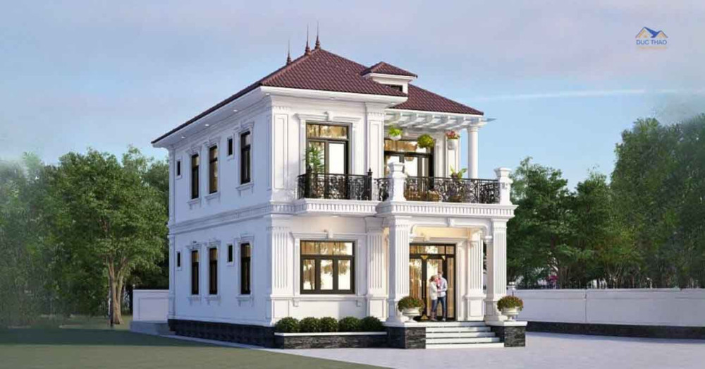 3D Mẫu Biệt Thự Mái Nhật 2 Tầng Tân Cổ Điển