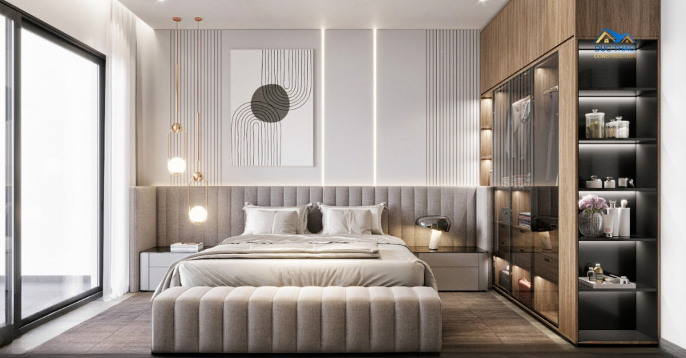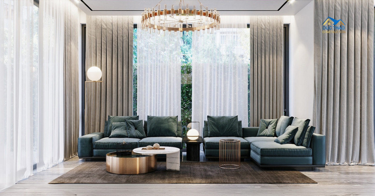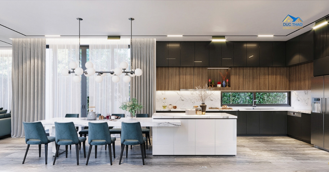 Khi bước vào ngôi biệt thự, người ta không thể không chú ý đến sự tinh tế trong từng chi tiết thiết kế. Mặt tiền được bố trí một cách hài hòa, nổi bật với sự kết hợp hài hòa giữa kính và các vật liệu công nghệ mới, tạo nên vẻ đẹp hiện đại và sang trọng. Bên trong, không gian mở rộng lớn kết hợp với hệ thống cửa kính lớn mở ra tạo cảm giác thoáng đãng và góc nhìn bao quát. Phòng khách và phòng bếp được thiết kế theo phong cách mở, tận dụng tối đa ánh sáng tự nhiên và không gian để tạo nên không gian sống linh hoạt và tiện dụng.