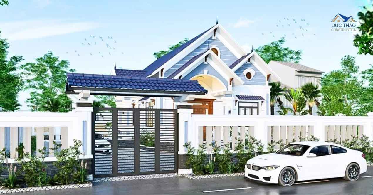 Mẫu nhà cấp 4 mái Thái sân vườn 100m2 đẹp tại Đồng Nai mang lại một không gian sống thoải mái và yên bình, kết hợp giữa vẻ đẹp truyền thống và tiện nghi hiện đại. Nó là một lựa chọn lý tưởng cho những người thích sự gần gũi với thiên nhiên trong không gian sống của mình.