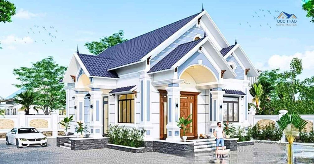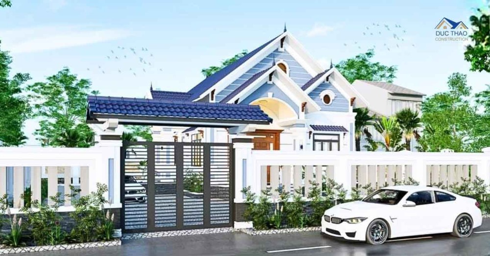 Mẫu nhà cấp 4 mái Thái sân vườn 100m2 là một kiểu kiến trúc truyền thống của Thái Lan, được thiết kế với một tầng, mái Thái và sân vườn rộng lớn. Nhà được xây dựng trên một diện tích đất rộng 100m2, cung cấp không gian sống thoáng đãng và gần gũi với thiên nhiên.