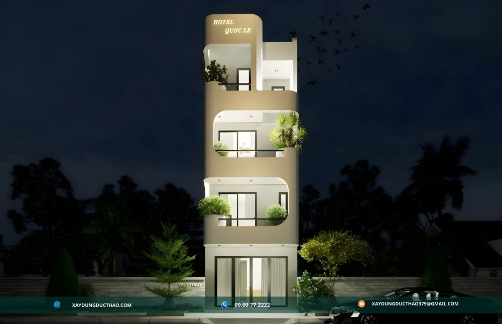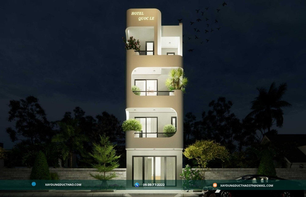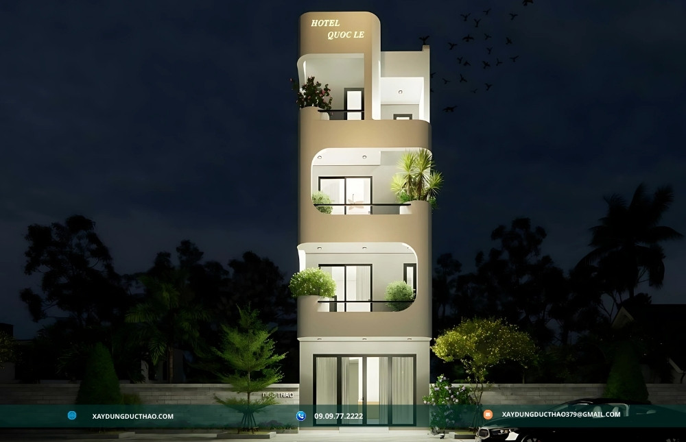 Mẫu thiết kế nhà phố 4 tầng từ công ty thiết kế và xây dựng Đức Thảo chính là biểu tượng của sự hoàn hảo và tinh tế. Mặt tiền nổi bật với các chi tiết vòm cong tinh tế, tạo cảm giác mềm mại, thanh lịch và hiện đại. Kết hợp cùng màu sắc trung tính và hệ cửa kính lớn, ngôi nhà đón ánh sáng tự nhiên tối đa và tạo hiệu ứng mở rộng không gian. Đây là xu hướng kiến trúc đang rất được ưa chuộng trong các khu đô thị.