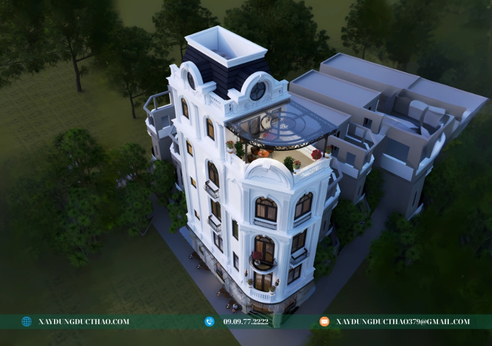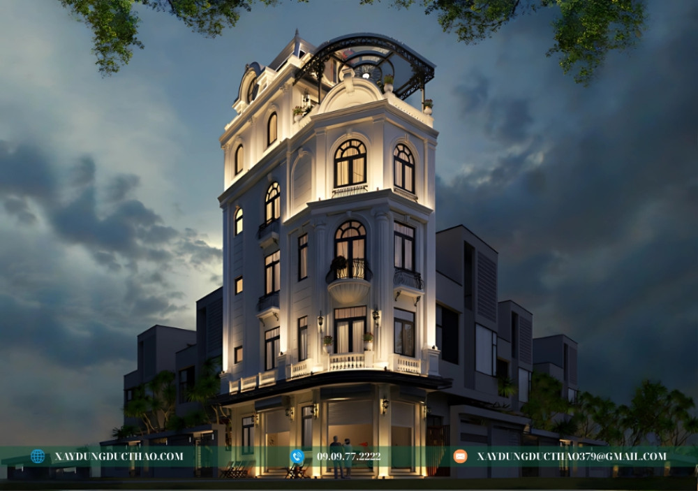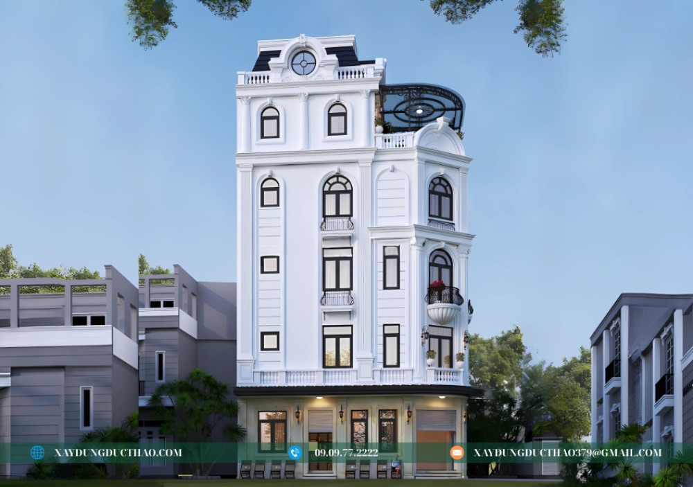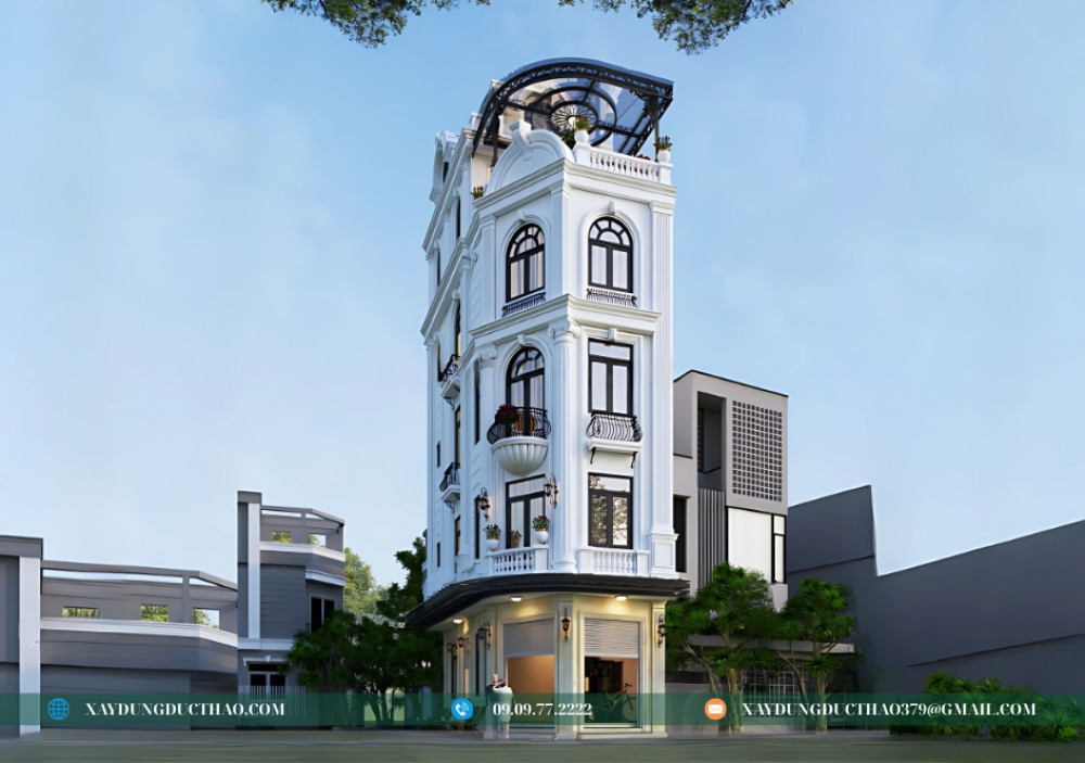 Mẫu nhà phố 2 mặt tiền 5 tầng tân cổ điển không chỉ đáp ứng nhu cầu về một không gian sống tiện nghi mà còn khẳng định gu thẩm mỹ tinh tế của gia chủ. Với kinh nghiệm và uy tín trong ngành, công ty thiết kế và xây dựng Đức Thảo tự hào mang đến những giải pháp kiến trúc tối ưu, biến ước mơ về ngôi nhà hoàn hảo của bạn thành hiện thực.