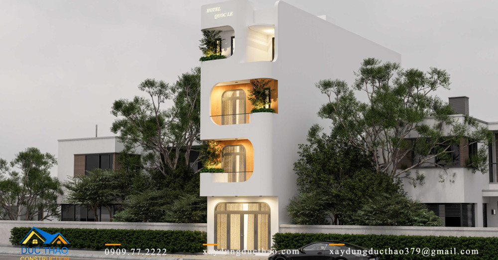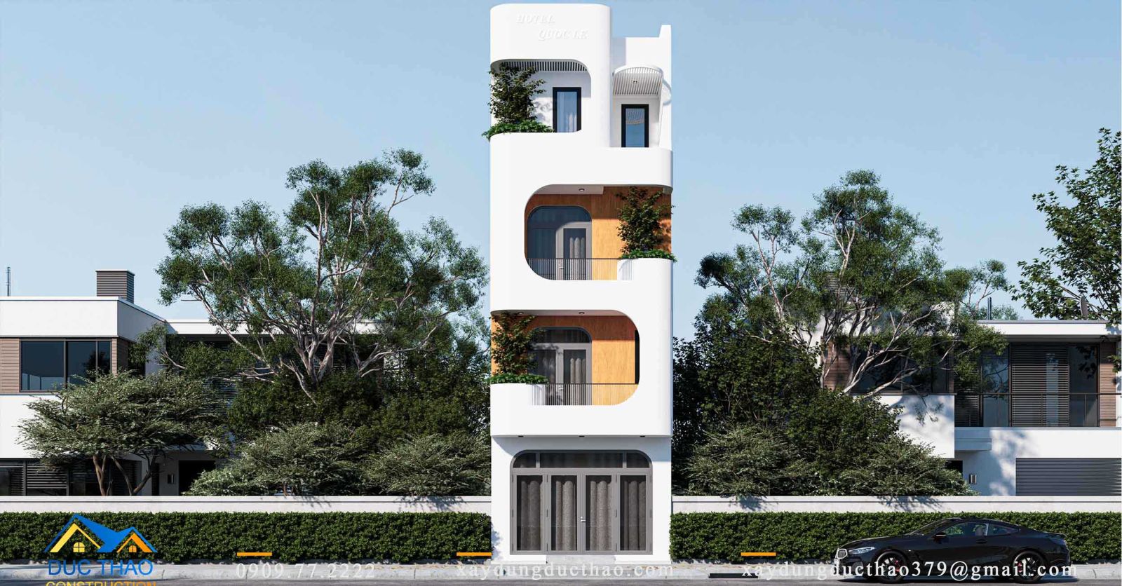 - Ban công ở mỗi tầng: Không chỉ là điểm nhấn kiến trúc, ban công còn giúp lấy sáng tự nhiên, tăng cường lưu thông không khí, mang lại không gian xanh mát và là nơi lý tưởng để thư giãn, ngắm nhìn phố phường.