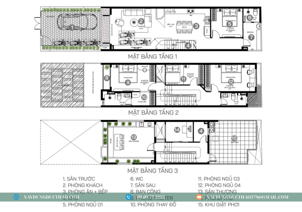 Để giúp bạn có cái nhìn cụ thể và rõ nét hơn về một không gian sống hiện đại, tiện nghi, chúng ta hãy cùng khám phá bố cục công năng của một mẫu nhà phố 3 tầng tiêu biểu được đội ngũ kiến trúc sư chuyên nghiệp tại Đức Thảo tỉ mỉ thiết kế: