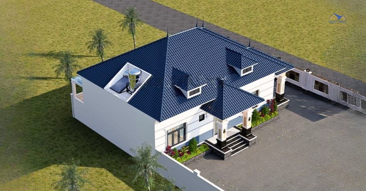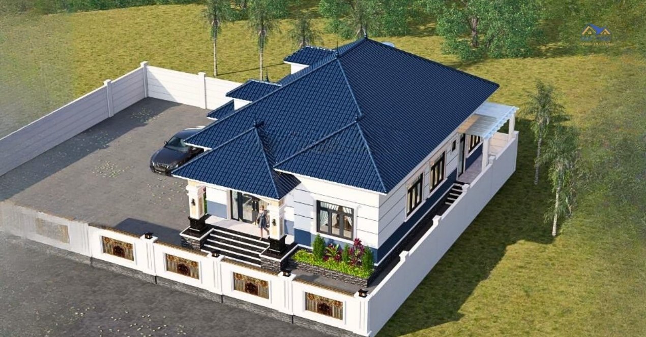 Thêm vào đó, sự kết hợp của công trình với mái Thái là một trong những điểm nhấn của mẫu nhà 1 tầng mái Thái đẹp. Điều này có tác dụng khiến cho không gian ngôi nhà thêm phần thoáng và rộng rãi hơn, phù hợp với điều kiện khí hậu nước ta, đặc biệt nó còn góp phần khẳng định giá trị cho mẫu nhà 1 tầng về giá trị thẩm mỹ cao trong không gian sống.