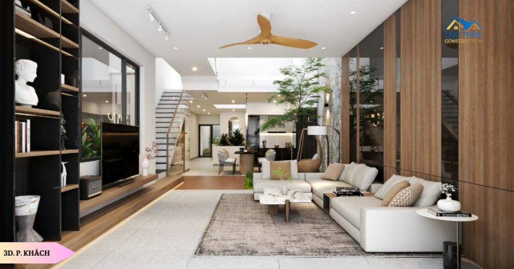 Một yếu tố không thể thiếu góp phần tạo nên vẻ đẹp và sự thoải mái cho không gian sống chính là ánh sáng tự nhiên. Công ty Đức Thảo đã khai thác tối đa nguồn ánh sáng này thông qua việc bố trí hệ cửa kính lớn và áp dụng thiết kế mở linh hoạt. Ánh sáng mặt trời chan hòa khắp mọi ngóc ngách, giúp không gian trở nên sáng bừng, thoáng đãng, đồng thời tạo cảm giác dễ chịu và thư giãn tuyệt đối. Sự kết hợp hoàn hảo giữa màu sắc, đường nét và ánh sáng đã kiến tạo nên một không gian sống không chỉ sang trọng, hiện đại mà còn ấm cúng, hài hòa và tràn đầy năng lượng tích cực.