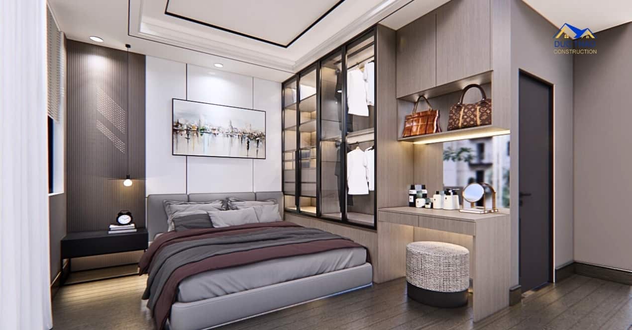 Mở không gian: Một trong những đặc điểm quan trọng của thiết kế nhà phố hiện đại là sự mở rộng và liên kết giữa các không gian. Bạn có thể sử dụng kính và cửa sổ lớn để tận dụng ánh sáng tự nhiên và tạo cảm giác không gian mở rộng hơn. Thiết kế không gian sống sáng tạo và thông thoáng, kết hợp phòng khách, phòng ăn và bếp thành một không gian chung.