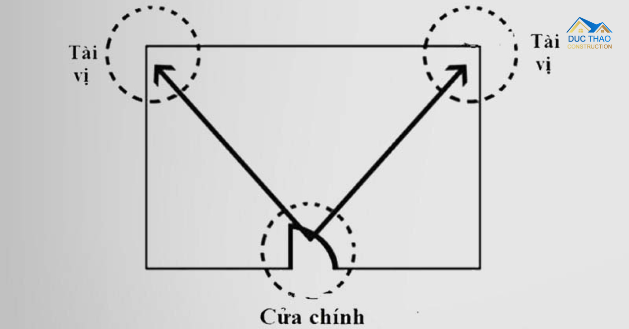 Vị trí tài lộc được xác định thông qua đường chéo từ cửa chính đến các góc tường của phòng khách. Nếu cửa mở về bên trái, tài vị nằm ở đầu đường chéo góc bên phải. Mở cửa giữa phòng, tài vị xuất hiện ở đầu đường chéo góc hai bên. Ngược lại, nếu cửa mở về bên phải, tài vị ở đầu đường chéo góc bên trái.
