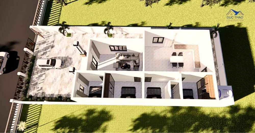Cuối cùng, không gian sân vườn xung quanh ngôi nhà cũng là một yếu tố quan trọng trong việc tạo ra một môi trường sống thoáng đãng và tạo cảm giác thư giãn cho cư dân. Gia đình có thể trồng cây xanh, tạo ra khu vườn nhỏ hoặc sân chơi cho trẻ nhỏ.Hy vọng bài viết này đã giúp bạn hiểu thêm về ngôi nhà cấp 4 mái Thái với diện tích 128m2, 3 phòng ngủ và 1 phòng thờ. Nếu bạn có bất kỳ câu hỏi nào thêm, xin vui lòng liên hệ cho chúng tôi qua hotlite 09.09.77.2222 .để được hổ trợ tư vấn miễn phí