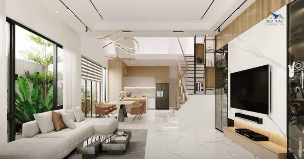 Thiết kế nội thất 3D của một nhà phố 2 tầng đơn giản sang trọng