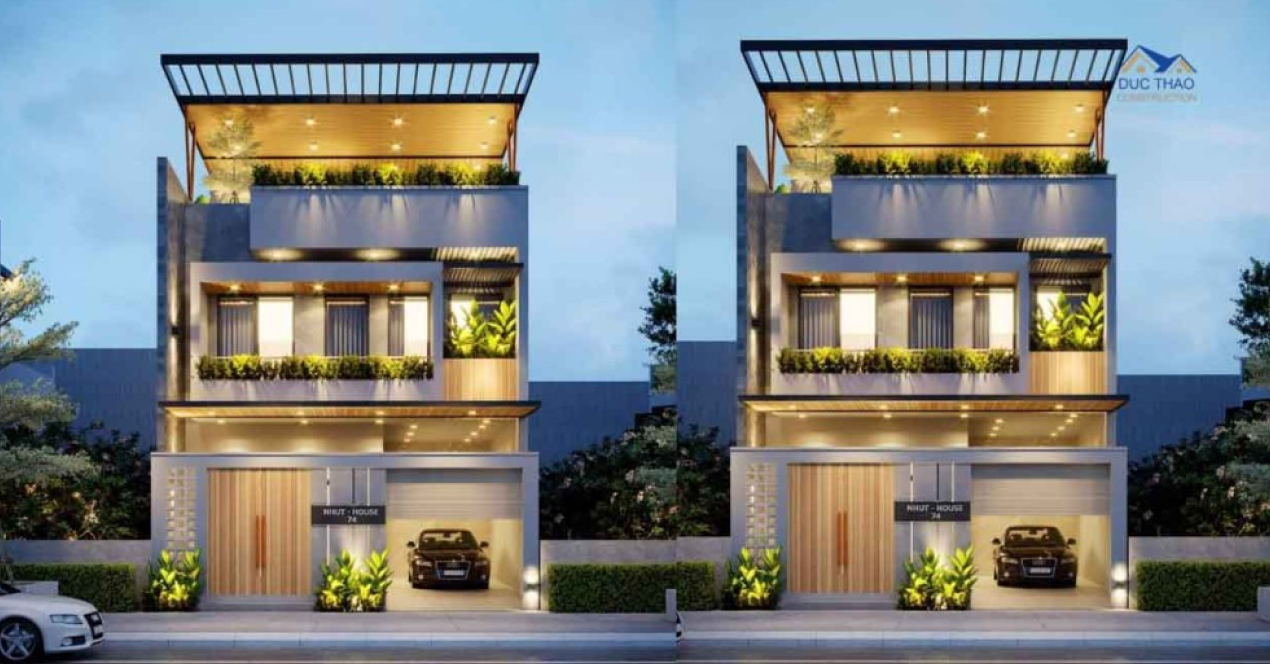 Mẫu nhà phố 3 tầng tại Quận 10, TP.HCM được thiết kế với phong cách tối giản, hiện đại. Mặt tiền nhà kết hợp nhiều yếu tố gỗ lát, tường bê tông xám cùng kiến trúc ban công mở nhiều cây xanh. Tổng thể ngôi nhà mang đậm nét tinh tế, sang trọng, cuốn hút mọi ánh nhìn. Gia chủ cũng tận dụng nhiều đèn led chiếu sáng bên ngoài, vừa đem lại trải nghiệm hiện đại và tiện nghi cho gia đình. Thông tin chi tiết về mẫu thiết kế này xem tại đây.