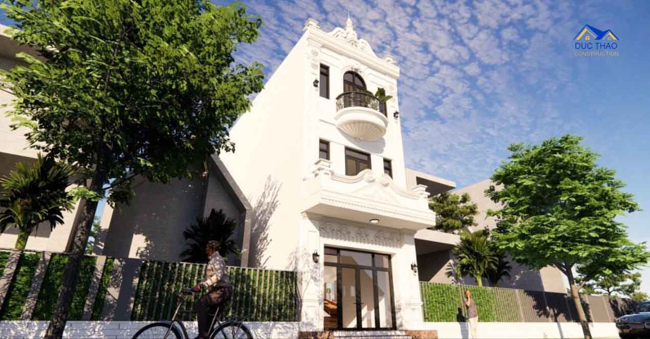 Nhà phố 3 tầng thiết kế theo phong cách tân cổ điển là sự kết hợp hài hòa giữa kiến trúc đương đại và yếu tố cổ điển, tạo nên một không gian sống đẹp mắt và sang trọng. Dưới đây là một mô tả chi tiết về ngôi nhà phố 3 tầng thiết kế theo phong cách tân cổ điển siêu đẹp: