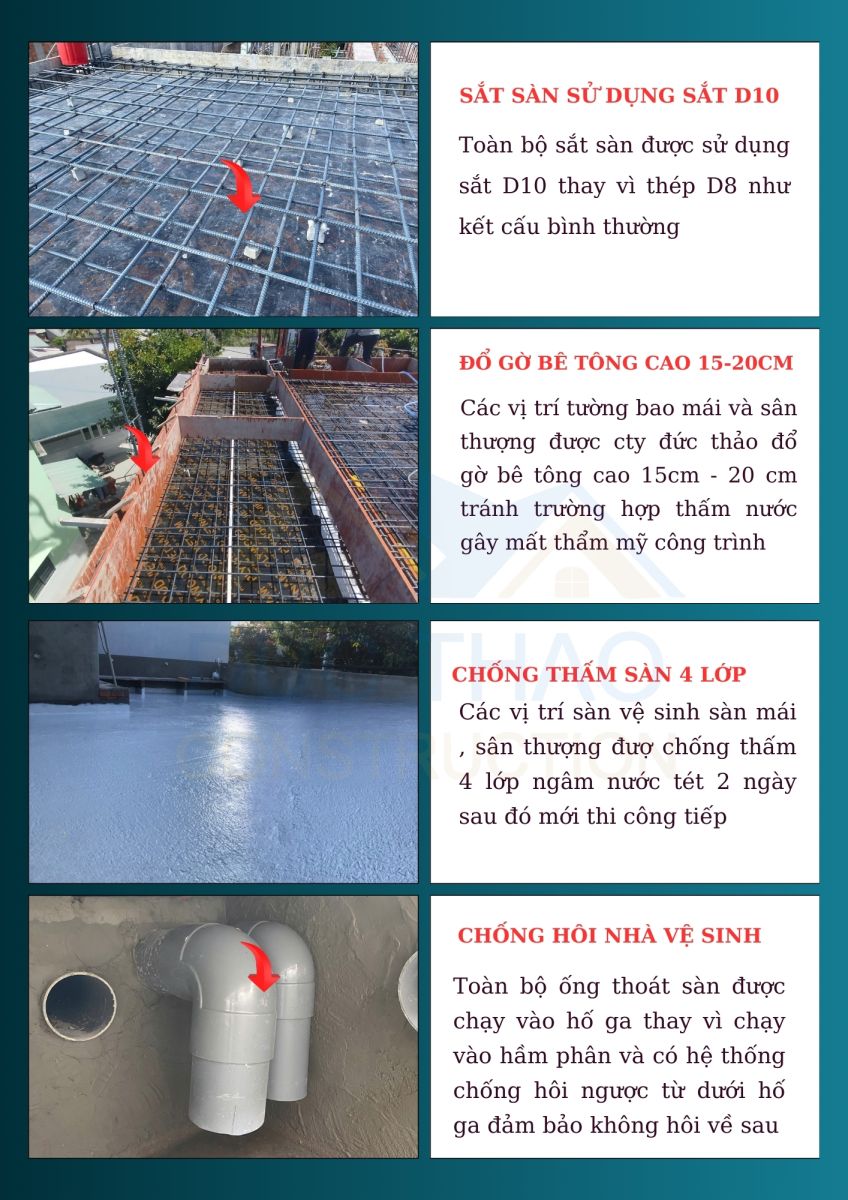 Trả lời: Do khí hậu nắng mưa thất thường tại Đồng Nai, việc bảo trì chống thấm, xử lý ẩm mốc là rất quan trọng. Đức Thảo cung cấp chính sách bảo hành lâu dài, đồng thời hướng dẫn khách hàng cách bảo trì định kỳ để đảm bảo công trình luôn bền đẹp và an toàn.