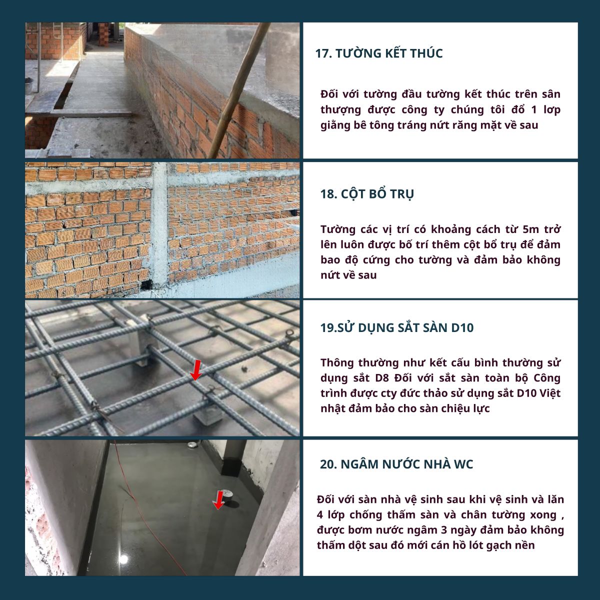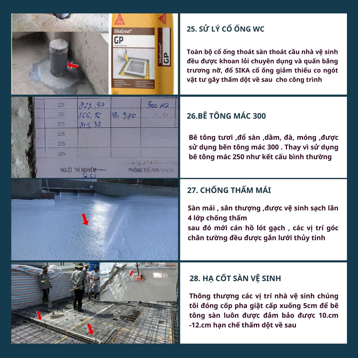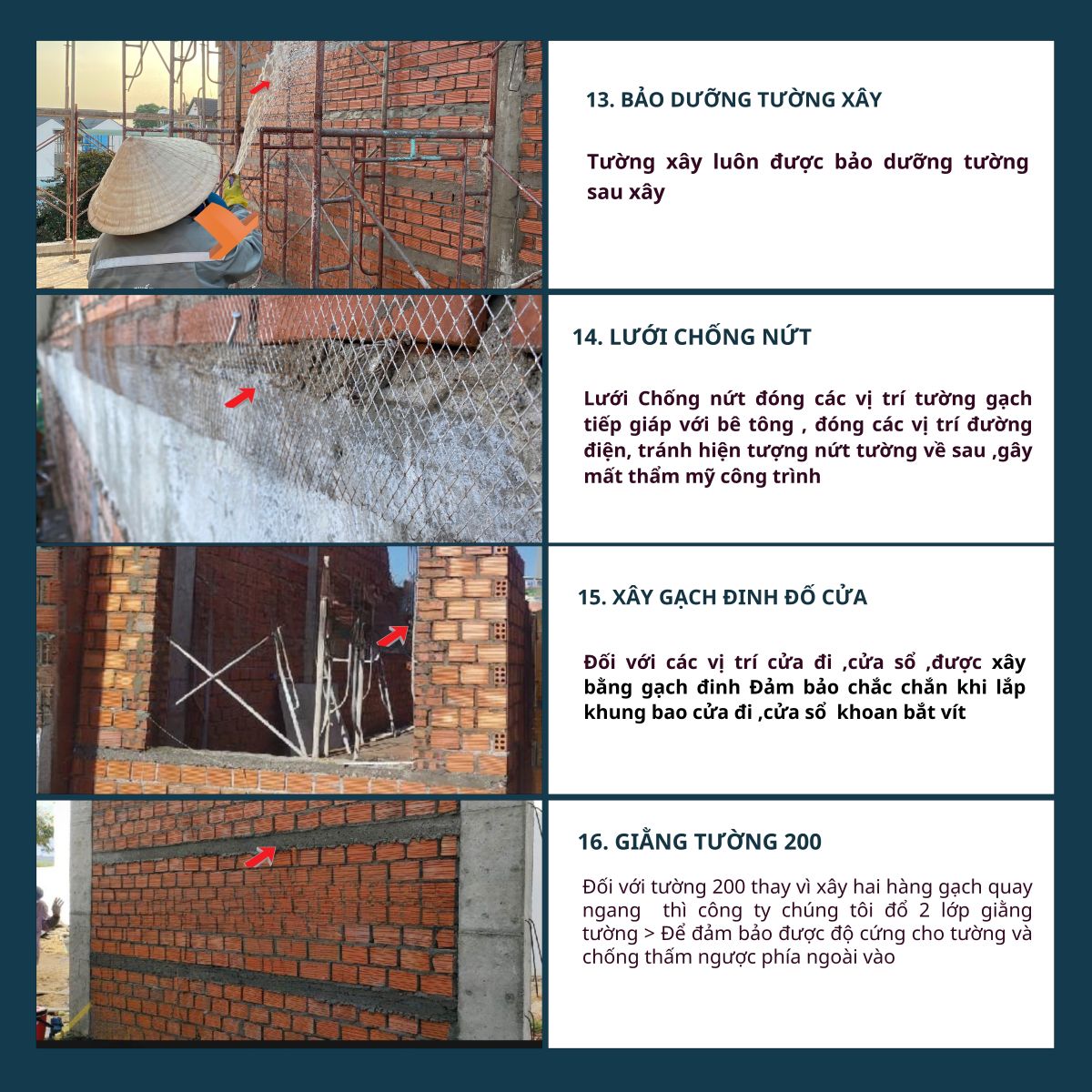 6. Nghiệm thu – bàn giao – bảo hành: Nghiệm thu từng hạng mục, bàn giao đúng tiến độ, bảo hành kết cấu 5 năm – hoàn thiện 1 năm.