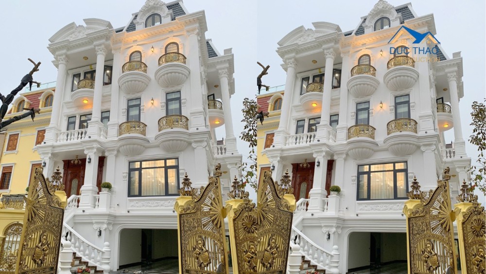 Công trình được kiến tạo theo phong cách tân cổ điển – biểu tượng của sự thanh lịch, quý phái và vững bền theo thời gian. Các chi tiết phào chỉ, cột trụ đối xứng, ban công sắt mỹ thuật uốn lượn và màu sắc chủ đạo trắng – vàng kim góp phần tôn lên khí chất cao sang của tổng thể ngôi nhà.