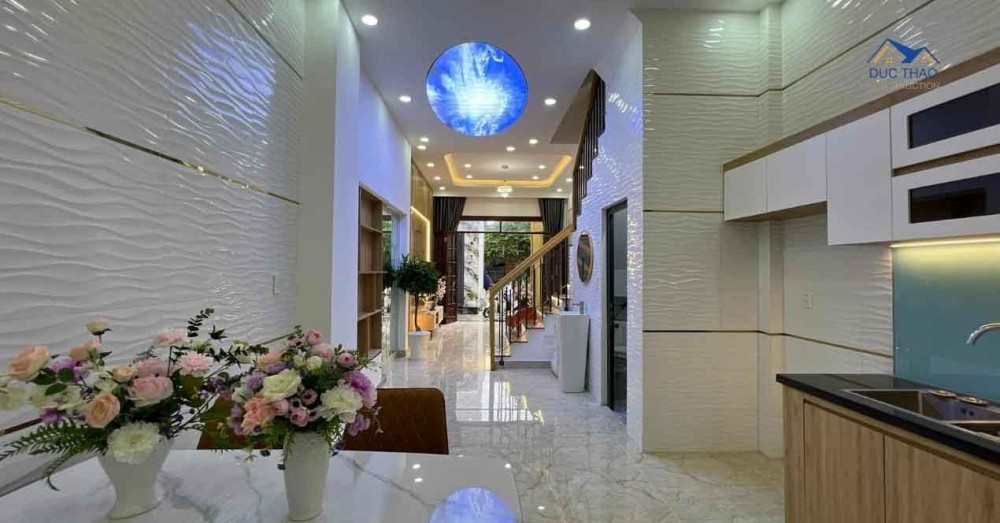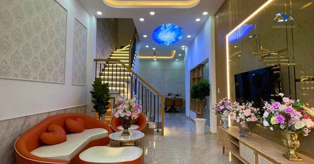 Quá trình xây dựng ngôi nhà phố tân cổ điển 3 tầng của anh Huy được thực hiện theo quy trình chặt chẽ, từ khảo sát địa chất, lập bản vẽ kỹ thuật, xin phép xây dựng đến thi công móng, phần thô và hoàn thiện. Mỗi giai đoạn đều được giám sát kỹ lưỡng bởi đội ngũ kỹ sư và kiến trúc sư giàu kinh nghiệm, đảm bảo tuân thủ đúng thiết kế và tiêu chuẩn chất lượng. Đặc biệt, phong cách tân cổ điển được thể hiện rõ nét qua các chi tiết phào chỉ tinh xảo, hệ thống cột trụ vững chãi, cùng với ban công sắt mỹ thuật uốn lượn mềm mại, tạo nên vẻ đẹp sang trọng và đẳng cấp cho mặt tiền 6m. Nội thất bên trong cũng được chăm chút tỉ mỉ, kết hợp vật liệu cao cấp và màu sắc hài hòa, tôn lên vẻ đẹp cổ điển mà vẫn đảm bảo tính ứng dụng cao. Ánh sáng tự nhiên được tận dụng tối đa, cùng hệ thống đèn chiếu sáng thông minh, mang đến không gian sống thoáng đãng và tràn đầy năng lượng tích cực.