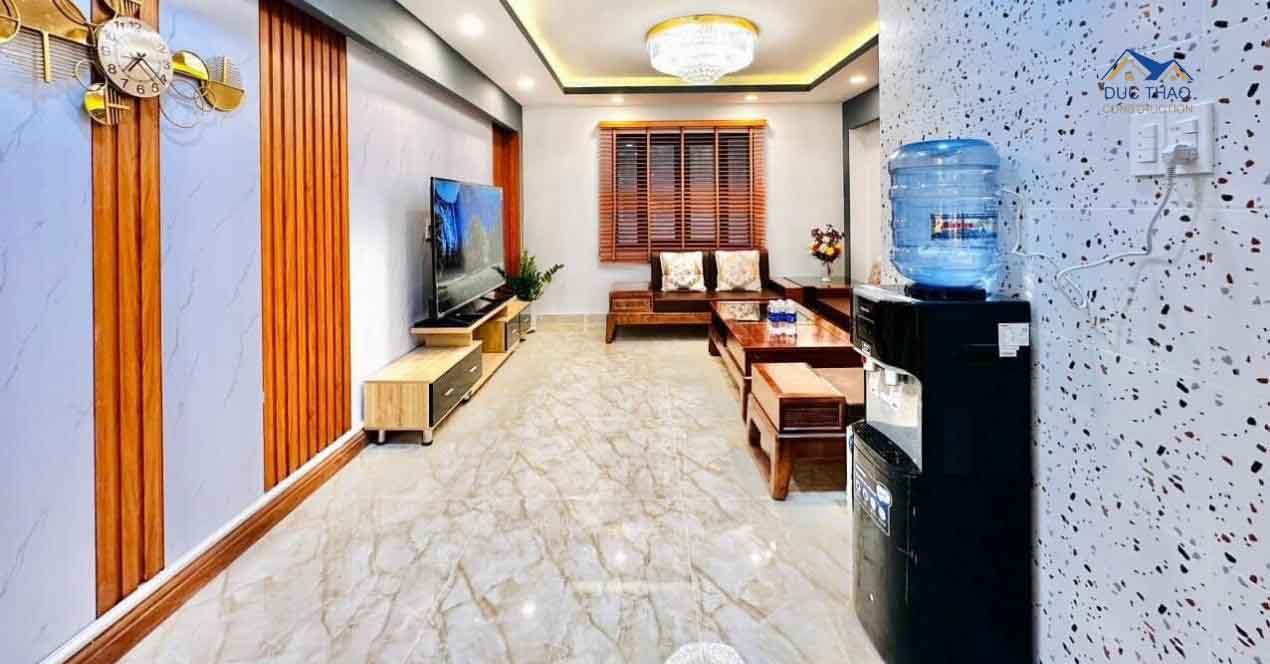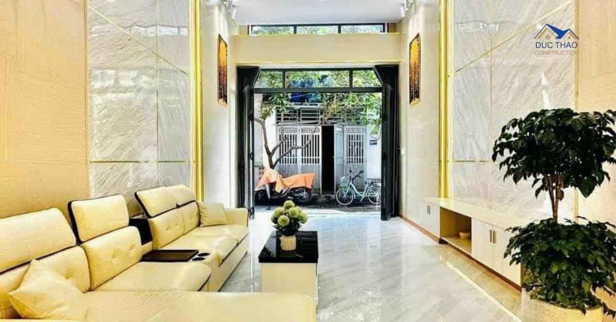 Để đảm bảo chất lượng và tính thẩm mỹ cho công trình, Công ty Xây dựng Đức Thảo luôn ưu tiên sử dụng vật liệu xây dựng cao cấp, có nguồn gốc rõ ràng và đạt tiêu chuẩn quốc tế. Từ phần móng vững chắc đến hệ thống mái, tường, cửa, và các chi tiết nội thất, mọi thứ đều được lựa chọn kỹ lưỡng để đảm bảo độ bền vượt thời gian. Quá trình thi công được thực hiện bởi đội ngũ công nhân lành nghề, giàu kinh nghiệm, dưới sự giám sát chặt chẽ của các kỹ sư chuyên môn. Sự tỉ mỉ trong từng công đoạn, từ đổ bê tông, xây tường đến hoàn thiện nội thất, đã góp phần tạo nên một ngôi nhà hoàn mỹ, đạt chuẩn về cả kỹ thuật và mỹ thuật.