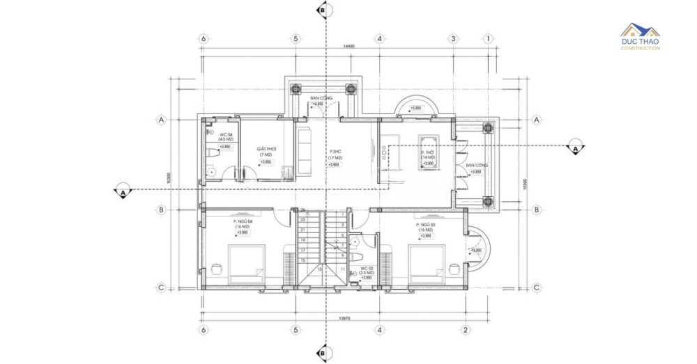 Tiến lên tầng 2, không gian đầu tiên mà chúng tôi muốn chia sẻ là khu vực phòng thờ, có diện tích 18m2. Di chuyển vào trong là phòng sinh hoạt chung, căn phòng này có diện tích 24m2. Tầng này có 3 phòng ngủ. Phòng ngủ số 3 có diện tích khoảng 18m2. Phòng ngủ số 4 có diện tích 18,3m2. Riêng phòng ngủ số 5 có diện tích 24m2, bên trong phòng ngủ có 1 nhà vệ sinh khép kín.Mặt bằng bố trí công năng tầng 2