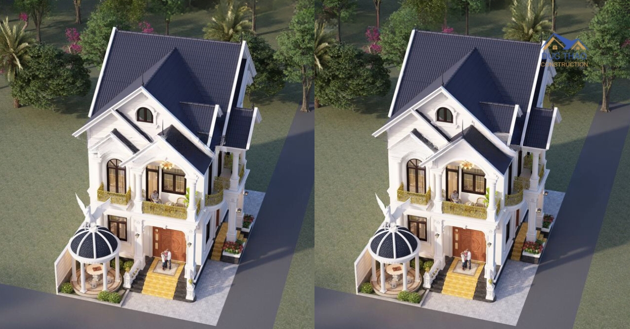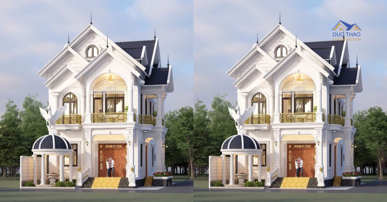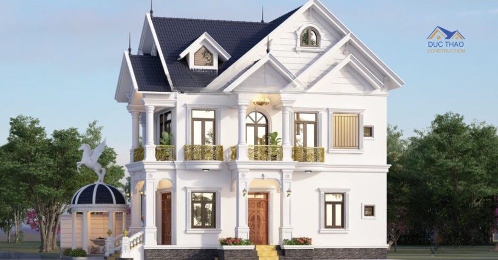 Mẫu biệt thự nhẹ nhàng từ cách kết hợp các chi tiết với nhau. Sự sang trọng, tinh tế của kiến trúc tân cổ được thể qua từng đường nét và hình khối vững chắc. Thước cột, gờ tường được bố trí cân đối để tạo nên sự thống nhất cho căn biệt thự 2 tầng mái thái đầy lịch lãm này .
