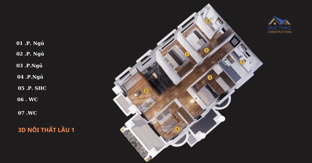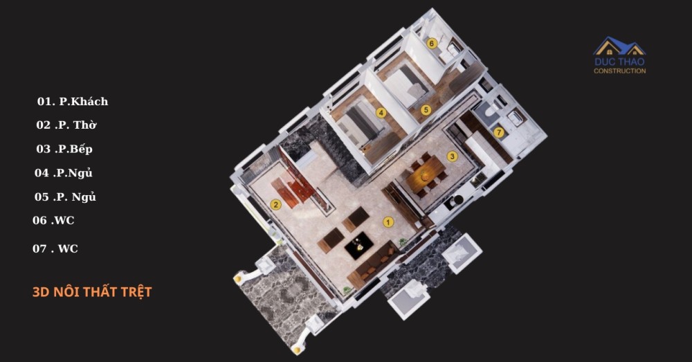 3D Nội Thất Của biệt thự 2 tầng mái thái