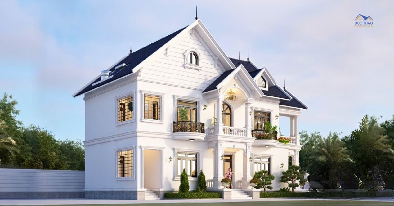 Công trình của nhà anh huy là một mẫu nhà mái Thái có phong cách tân cổ điển. Hệ thống mái Thái còn giúp toàn bộ ngôi nhà trở nên cao, bề thế hơn. Cùng với đó, mái Thái giúp thoát nước khá tốt, tránh bị ứ đọng nước làm tăng độ bền của ngôi nhà.Những chi tiết đắt giá ở công trình là hệ vòm, cột tròn, các chi tiết trang trí tại mái sảnh. Liền với khu vực sảnh chính là bậc tam cấp. Những đường nét phào chỉ chạy ngang tôn lên vẻ khỏe khoắn, chắc chắn của mẫu nhà tân cổ điển.