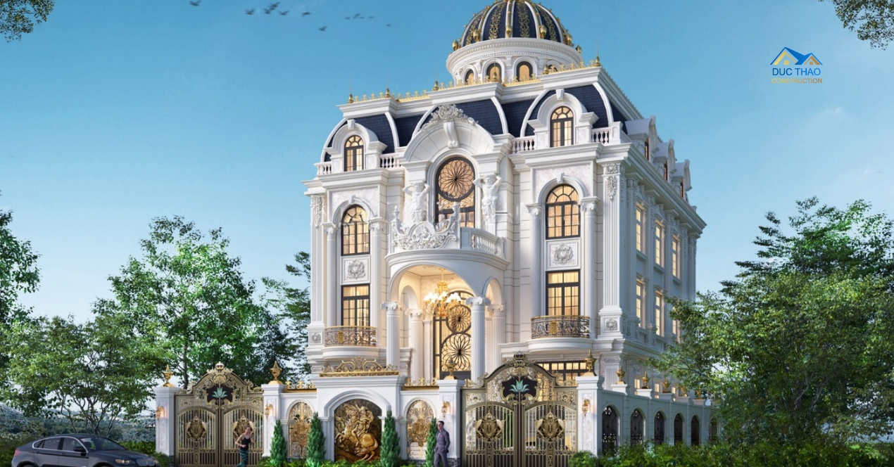 Những mẫu biệt thự do công ty thiết kế và xây Dựng Đức Thảo thường được thiết kế với cấu trúc đối xứng hoàn hảo, các cột trụ vững chãi và mái vòm duyên dáng. Chi tiết trang trí tỉ mỉ, như các hoa văn chạm khắc trên cột, cửa sổ và tường, cùng với việc sử dụng vật liệu cao cấp như đá hoa cương, gỗ tự nhiên và kim loại quý, tạo nên một không gian sống vừa sang trọng vừa bền vững. Màu sắc chủ đạo cong ty xây dựng Đức Thảo thường chọn là các gam màu trung tính, như trắng, be và vàng kim, giúp không gian sống trở nên thanh lịch và ấm cúng. Các yếu tố hiện đại, như hệ thống chiếu sáng thông minh và các thiết bị tiện nghi, hoàn thiện sự kết hợp hoàn hảo giữa truyền thống và sự đổi mới, khẳng định đẳng cấp và phong cách sống của chủ nhân.