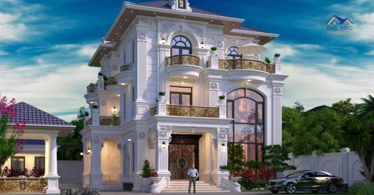 Mẫu nhà biệt thự vườn tân cổ điển nổi bật trên nền sơn trắng tinh khiết làm chủ đạo