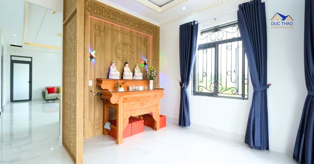 Phòng thờ được bố trí ở vị trí trang trọng, yên tĩnh, thể hiện sự tôn kính với tổ tiên.