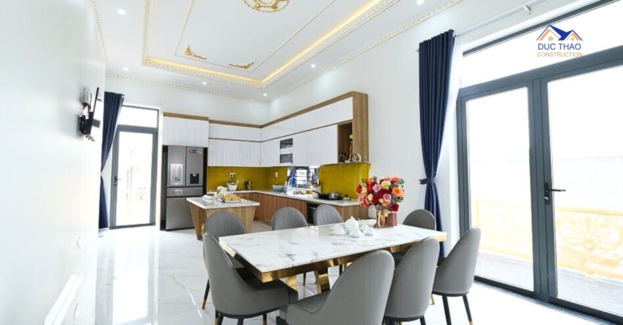 Từ khâu thiết kế, lựa chọn vật liệu đến thi công và hoàn thiện, đội ngũ Xây Dựng Đức Thảo luôn đặt yếu tố chất lượng lên hàng đầu. Từng chi tiết trong căn biệt thự của chị Lý đều được chăm chút kỹ lưỡng – từ hệ thống đèn chiếu sáng, trần thạch cao, sàn gỗ đến hệ thống cửa nhôm kính cao cấp, đảm bảo vừa bền vững vừa thẩm mỹ cao.