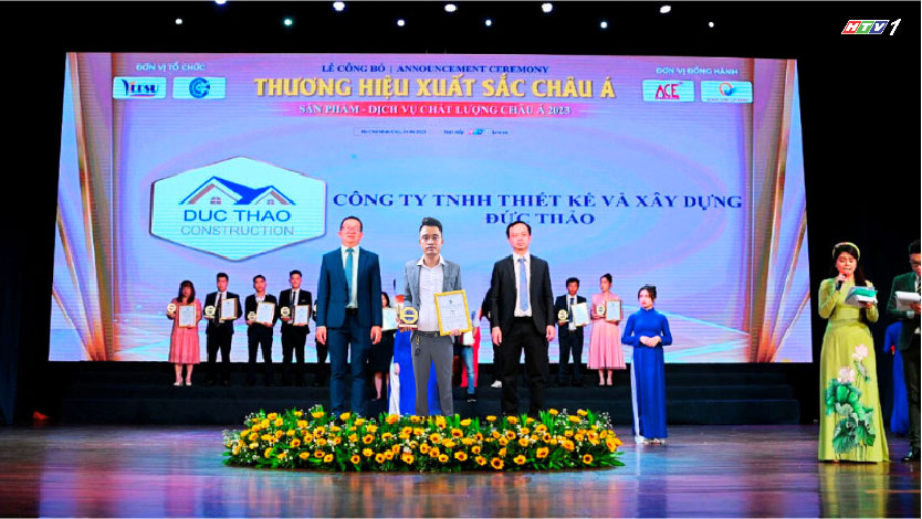 Ngày 24/6/2023 tại chương trình “Thương Hiệu Xuất Sắc Châu Á 2023” do Viện Nghiên Cứu Kinh Tế Châu Á tổ chức, Xây Dựng Đức Thảo đã vinh dự góp mặt trong bảng xếp hạng uy tín này. Đây là giải thưởng danh giá tôn vinh doanh nghiệp có sản phẩm, dịch vụ chất lượng uy tín hàng đầu Việt Nam.